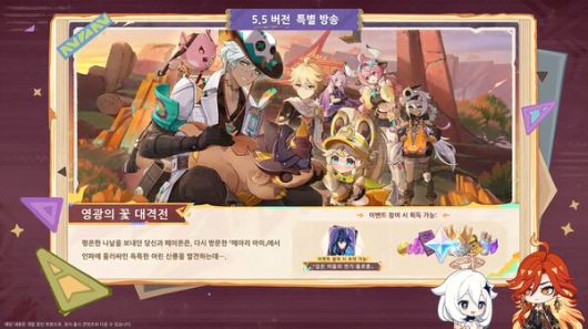 호요버스가 14일 원신 5.5 버전 '불이 돌아오는 날' 업데이트 특별 방송을 진행했다. 방송에는 페이몬 김가령 성우, 마비카 김나율 성우, 바레사 김예림 성우, 얀사 이재현 성우가 마이크를 잡았다.