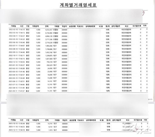 ◇ 박재홍> 지금 이제 유튜브로 사진 나가는데 계좌별 거래 명세표인데 이 사진은 어떤 의미인가요?