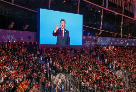 지난달 7일 중국 하얼빈 국제 컨벤션 전시 스포츠센터에서 열린 제9회 하얼빈 동계아시안게임 개회식에서 시진핑 중국 국가주석이 손을 흔드는 영상이 나오고 있다. (사진=연합뉴스) |