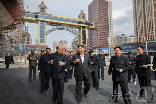 (서울=뉴스1) 최소망 기자 = 김정은 북한 노동당 총비서가 완공을 앞둔 평양 화성지구 3단계 1만 세대 살림집(주택) 건설장을 방문하고 "우리는 세계적으로 수도권의 살림집 문제를 완벽하게 해결한 자랑할 만한 나라가 될 것"이라고 자찬했다.