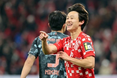 이재성이 뮌헨전에서 득점한 뒤 환호하고 있다. 사진 | 마인츠=AFP연합뉴스 |