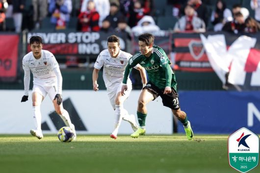 전진우가 선제골을 터트렸다. 전반 26분 이영재가 내준 환상적 왼발 패스를 김태현이 잡아 중앙으로 보냈다. 전진우가 슈팅으로 밀어 넣었는데 이태석이 걷어내지 못하고 그대로 골망을 흔들었다. 전반 30분 코너킥 상황에서 박재용 헤더가 그대로 골이 되면서 전북이 2-0으로 앞서갔다.