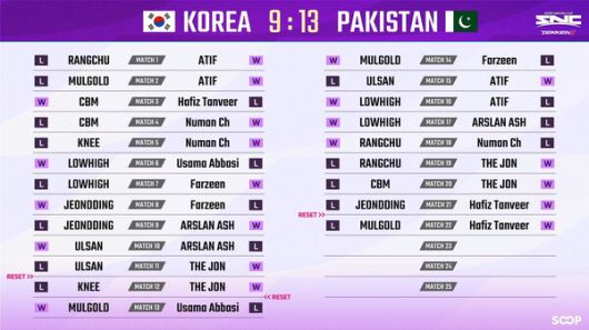 대회는 Day2 엔트리 방식과 Day3 승자연전 방식으로 진행됐다. Day2에서 DNF 울산 임수훈과 DRX 무릎 배재민 선수가 고군분투했지만 결국 7대3 파키스탄의 승리로 막을 내렸다.