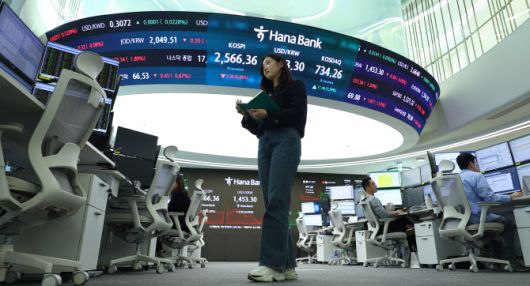 14일 서울 중구 하나은행 본점 딜링룸 스크린에 각종 지수가 표시돼 있다. (사진=연합뉴스) |