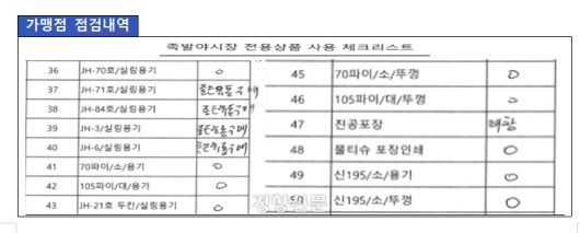 족발야시장 개망본부 올에프엔비가 가맹점에 포장용기 구매 현황을 점검한 내용. 공정거래위원회 제공. |