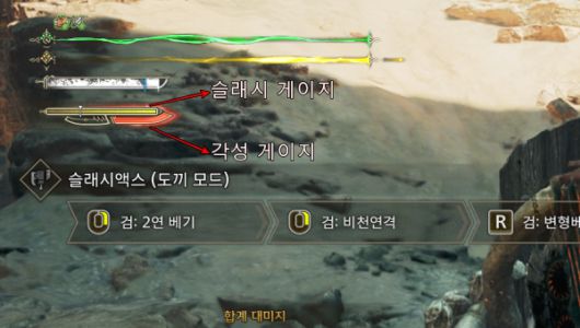 요약하면 도끼로 슬래시 게이지를 쌓고 검 공격으로 슬래시 게이지를 소모하면서 각성 게이지를 쌓는 메커니즘이다. 다만, 무리하게 검 공격을 펼치다가 슬래시 게이지가 바닥나지 않도록 주의해야 한다.