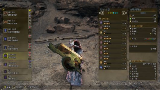 무기: 아티어(마비속성, 회심률 증강 2회, 기초공격력 증강 1회)