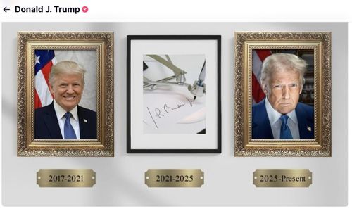 바이든 전 대통령 위치에 오토펜 그림 배치한 트럼프 |