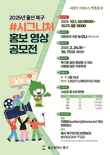 북구 관계자는 "다양한 아이디어를 바탕으로 한 재미있고 참신한 작품을 기다린다"며 "북구 시그니처 홍보 영상 공모전에 많은 관심을 부탁한다"고 말했다.