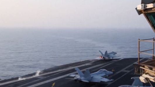 후티를 상대로 한 작전을 위해 이륙하고 있는 미국 전투기. 미국 정부 제공. 로이터 연합뉴스