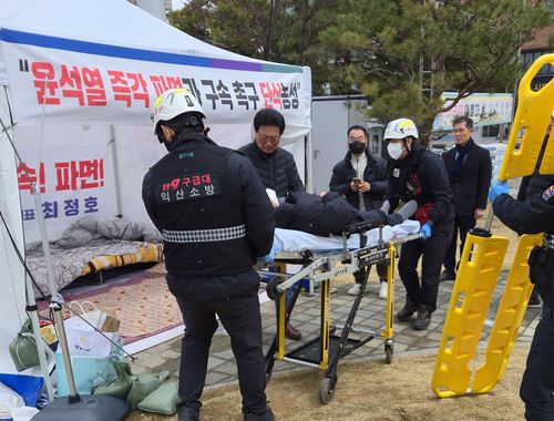 (익산=연합뉴스) 김동철 기자 = 윤석열 대통령의 탄핵을 촉구하며 일주일째 단식을 이어오던 더민주전북혁신회의 최정호 익산공동상임대표(전 국토부 제2차관)가 18일 건강 악화로 병원으로 이송됐다.