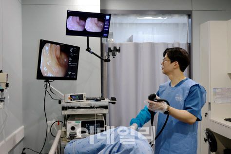 KMI광화문센터의 송완희 대표원장이 인공지능 내시경 웨이메드 엔도를 사용하고 있다. (사진=웨이센) |