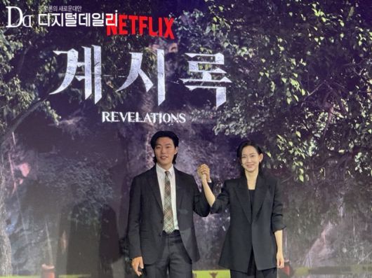헐리우드 거장 알폰소 쿠아론 감독과 연상호 감독이 의기투합한 넷플릭스 영화 계시록은 실종 사건의 범인으로 추정되는 '권양래(신민재 분)'를 단죄하는 것을 신의 계시로 믿는 목사 '성민찬(류준열 분)'과 죽은 동생의 환영에 시달리는 실종 사건 담당 형사 '이연희(신현빈 분)'가 각자의 믿음을 쫓으며 벌어지는 이야기를 다룬다. 다음은 이날 진행한 연상호 감독 및 류준열, 신현빈, 신민재와의 일문일답.