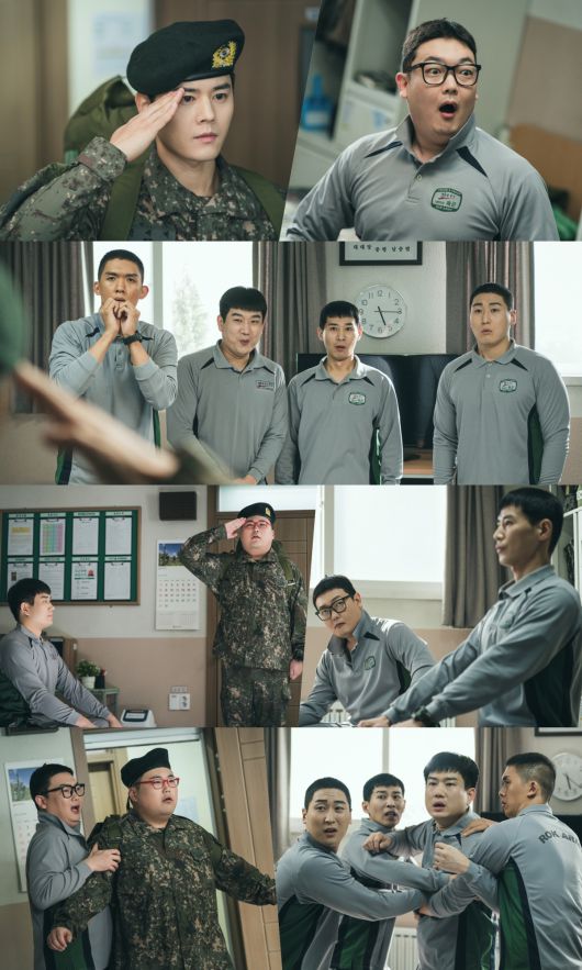 심지어 신화부대 공식 포커페이스 임다혜(전승훈 분)는 수줍은 하트까지 그리고 있어 눈길을 끈다. 그 시선 끝에 선 이는 바로 '국민수저'를 쥐고 입대한 글로벌 스타 전세계(김동준 분)다. 눈부신 비주얼도 완벽하건만, 경례까지 칼각인 전세계는 '준비된 신병' 그 자체의 자태로 모두의 감탄을 자아낸다고.