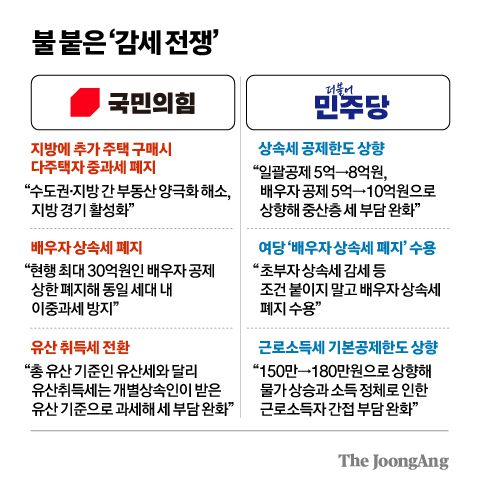 중과세 폐지, 상속세 감면…여야 ‘중도층 잡기’ 감세전쟁