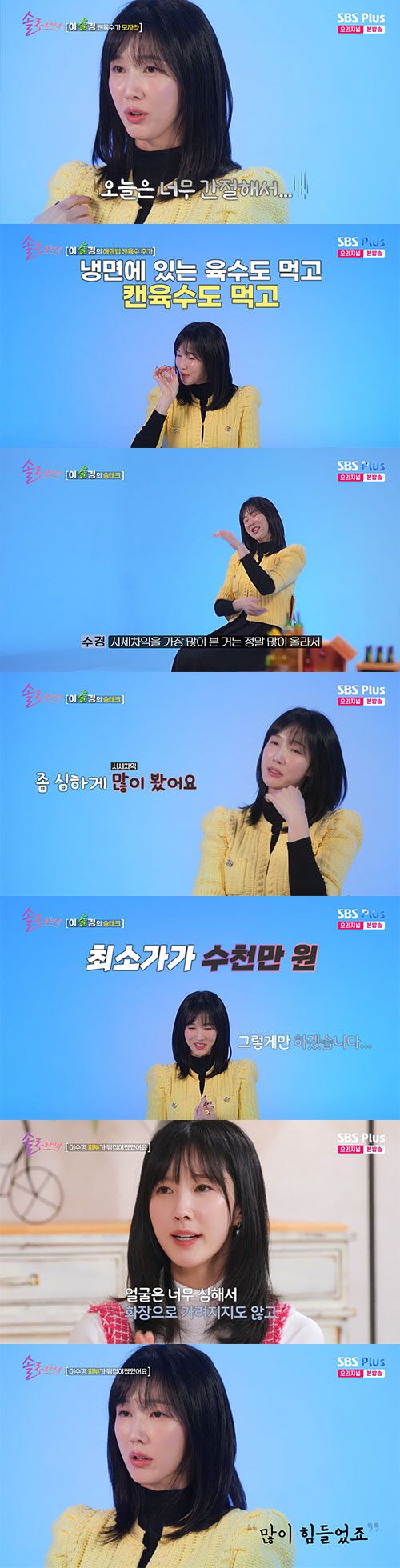 18일 방송된 SBS Plus·E채널 예능 '솔로라서' 11회에서는 '솔로 언니'로 합류한 이수경이 자신의 집에서의 리얼 일상을 공개해 신선한 충격을 안겼다.