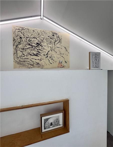 '공이 들어가지 않아도'(Even if the ball doesn't go in) 전시는 드로잉 작업 과정에 대한 시각적 은유를 드로잉 총 53점에 담아냈다. 작가가 마스터피스를 만들기 전, 드로잉으로 여러 가지 실험이나 낙서하는 과정을 '공이 골대에 들어가기 위해 연습하는 과정'에 비유했다.