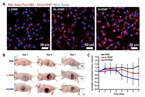 여기에 자성을 합성한 뒤 종양에 주입, 자기장 처리로 생성되는 열을 통해 종양 조직을 괴사시키는 항암 온열 치료 기술을 시연했다. 실험 결과 D-카이랄성을 가진 자성 나노입자가 L-카이랄성을 갖는 자성 나노입자보다 암세포에 더 많이 흡수되며, 그 결과 항암 치료 효과가 4배 이상 향상된 것으로 나타났다.
