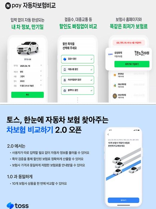 20일부터는 혁신금융서비스 부가조건 준수여부 등을 확인받은 네이버페이와 토스 등 2개 핀테크사에서 자동차보험 비교·추천 서비스 2.0을 출시, CM과 플랫폼간 보험료 차이를 없애고 일원화 한다. 보험계약 만기일 4월19일 이후 소비자부터 일원화된 가격으로 비교추천 서비스를 이용해 자동차보험을 가입할 수 있다.