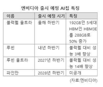 엔비디아 올 하반기부터 블랙웰 울트라, 루빈, 루빈 울트라 파인만 차례로 출시