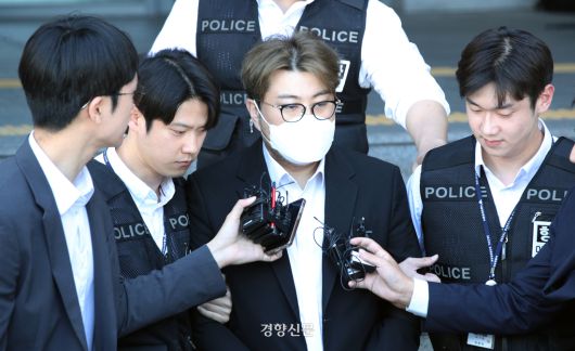 트로트 가수 김호중씨가 지난해 5월31일 오전 서울 강남경찰서에서 나와 검찰로 구속 송치되고 있다. 권도현 기자 |