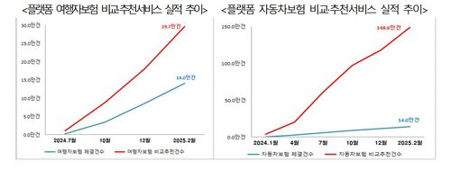자동차보험 외에도 용종보험, 저축보험, 펫보험, 여행자보험 등 5개 보험상품에 대해 플랫폼서 비교·추천서비스가 출시, 운영되고 있다. 여행저보험 비교·추천 서비스의 경우 출시 7개월만에 일평균 약 977건이 계약돼, 구매전환율이 62.5%(2월 평균)에 달하는 것으로 나타났다.