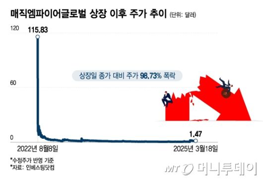 매직엠파이어글로벌 상장 이후 주가 추이. /그래픽=이지혜 |