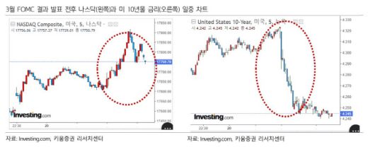 20일 한지영 키움증권 연구원에 따르면 전일(20일) 미국 증시는 3대 지수 모두 1% 대내외의 강세를 보였고, 엔비디아(+1.8%), 테슬라(+4.6%), 애플(+1.2%) 등 M7주들도 동반 강세를 나타냈다. 최근 연쇄적인 주가 조정에 따른 낙폭 과대 인식성 매수세가 유입된 가운데, 3월 FOMC를 무난하게 치렀다는 점이 증시 반등의 명분을 제공한 것으로 풀이했다.