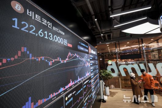 [서울=뉴시스] 정병혁 기자 = (기사와 무관한 사진) 10일 서울 서초구 빗썸 투자자보호센터 설치된 전광판에 비트코인 시세가 나오고 있다. 2025.03.10. jhope@newsis.com |