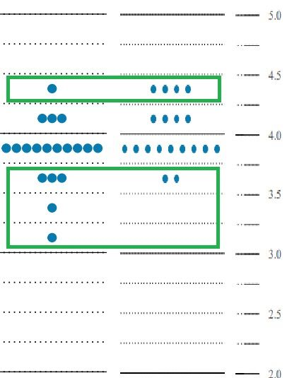 연준이 발표한 점도표를 보면 이번 회의에서 19명의 위원 중 4명은 올해 현 수준의 기준금리가 이어질 것으로 내다봤다. 지난해 12월(1명)과 비교해 증가했다.