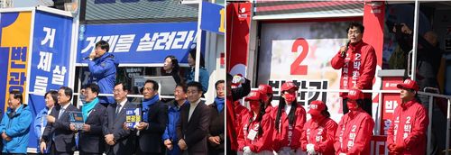 (거제=연합뉴스) 이준영 정종호 기자 = 4·2 재보궐선거 공식 선거운동 첫날인 20일 거제시장 재선거와 경남도의원 재선거, 양산시의원 보궐선거에 나선 후보들이 저마다 적임자를 자처하며 본격 선거운동에 돌입했다.