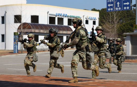 19일 경기 파주시 도시작전지역 훈련장에서 미2사단/한미연합사단 스트라이커 여단 장병들이 자유의 방패(프리덤 실드) 일환으로 열린 한미 연합 도시지역작전 훈련을 하고 있다. 2025.03.19. [파주=뉴시스] |