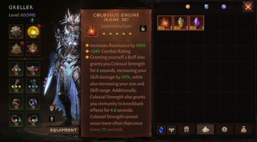 3종의 신규 전설 보석이 추가되어 영웅을 강화할 수도 있다. 거수 기계(Colossus Engine, 5성 보석)는 거수의 힘을 부여해 기술 공격력을 50% 증가시키고 크기와 기술 범위를 증가시키며 밀쳐내기 면역을 부여할 수 있다. 망령 유리(Specter Glass, 2성 보석)는 극대화 시 적의 방어구가 산산조각 나, 주는 피해와 극대화 확률이 증가하며, 흔들리는 손아귀(Faltergrasp , 1성 보석)를 통해 극대화 시 적을 무력화해 이동 속도를 감소시키고 질주 기술을 차단할 수 있다.