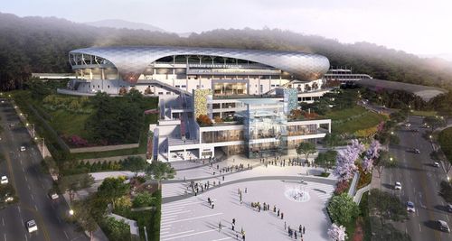 이 미술관은 김해종합운동장과 합쳐진 독특한 형태의 복합미술관으로 연면적 5천760㎡로 4개 층 규모다.