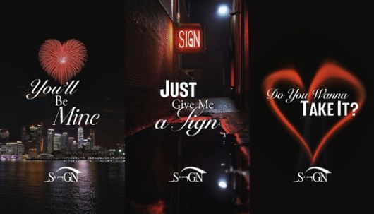 이날 공개된 리릭 포스터에는 각각 반짝 위에 야경을 배경으로 터지는 하트 모양의 폭죽, 비가 내린 감성적인 밤거리에 걸린 ‘SIGN’ 표지판, 일렁이는 하트 심볼이 담겨 시선을 단번에 사로잡았다.