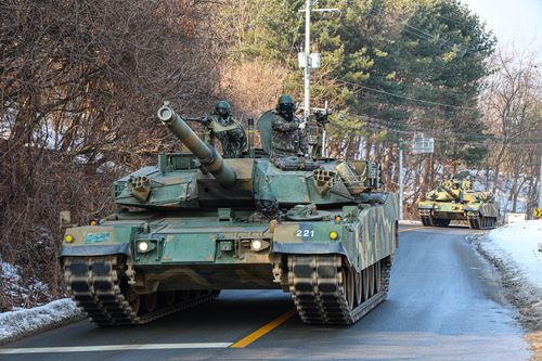 기동하는 K1E1 전차 |