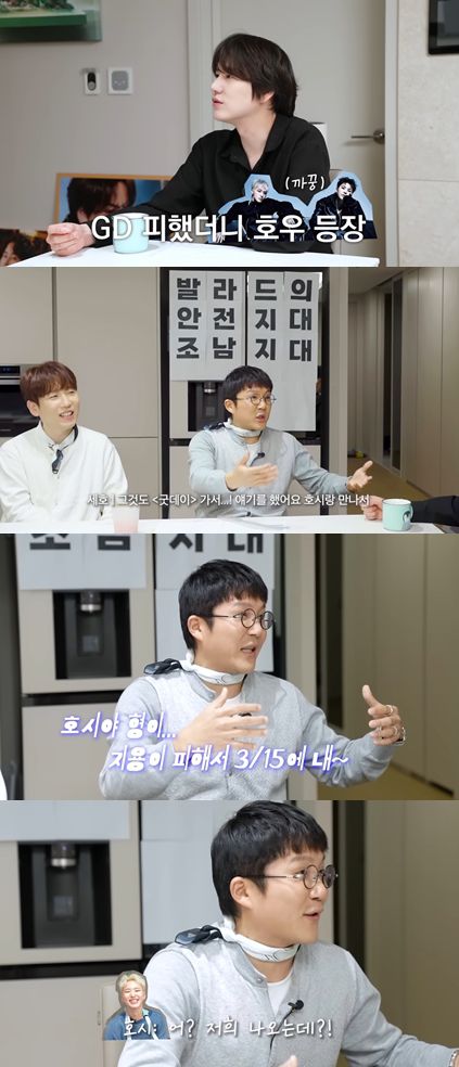 규현은 "근데 GD 씨를 피했는데, 또 호우(호시·우지)랑 붙게 됐지 않냐"고 하자, 조세호는 "그것도 '굿데이' 기서 얘기했다"고 답했다.