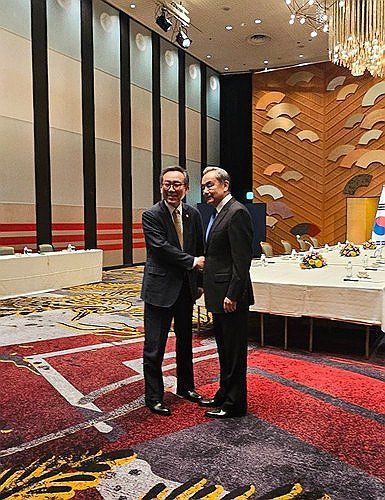 (도쿄=연합뉴스) 이상현 기자 = 21일 도쿄의 한 호텔에서 외교장관 회담을 가진 조태열 장관(왼쪽)과 왕이 중국공산당 중앙외사판공실 주임(외교부장 겸임). 2025.3.2