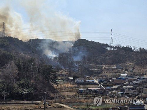 (함양=연합뉴스) 23일 오후 경남 함양군 유림면 한 야산에서 불이 났다. 사진은 화재 현장에서 연기가 치솟는 모습. 2025.3.23 [독자 제공. 재판매 및 DB 금지]