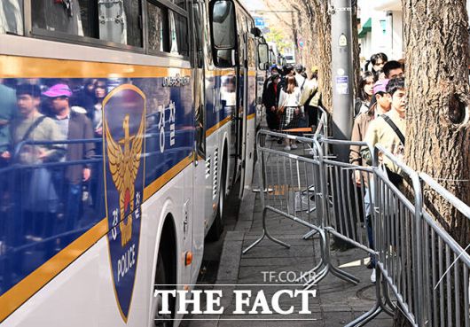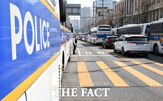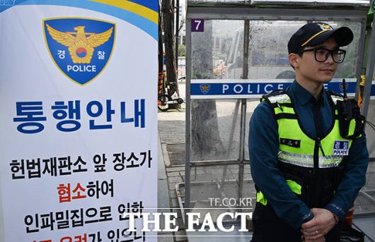 지난 20일 헌재 앞에서 백혜련 더불어민주당 의원 등이 기자회견 중 날계란을 맞는 사건이 발생했고, 이재정 의원이 한 남성으로부터 허벅지를 가격 당하는 등 사건사고가 이어지자 경찰은 헌재 앞 차벽과 통행 통제 등 인근 경비를 강화한 상태다.