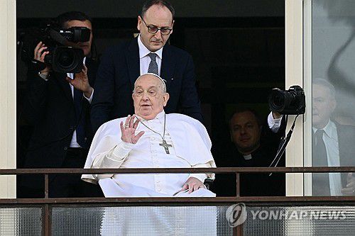 교황은 입원했던 로마 제멜리 병원 10층 발코니로 휠체어를 타고 나와 손을 흔들며 "모두에게 감사하다"고 말했다.