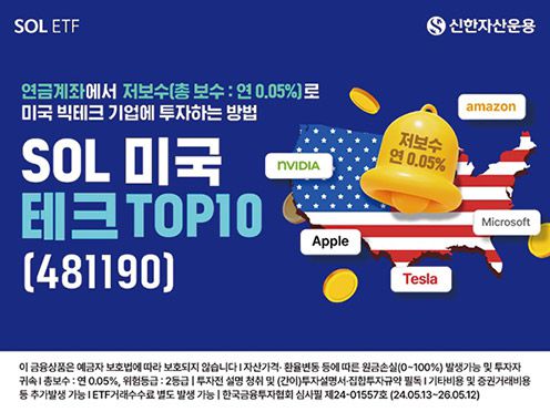 [한국금융신문 정선은 기자] 신한자산운용의 ‘SOL 미국테크 TOP10' ETF(상장지수펀드)는 합리적 보수를 강점으로 삼고 있다.
