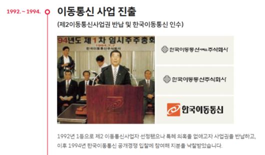 체신부는 1992년 4월 제2 이동통신 허가신청공고를 냈다. SK 포스코 코오롱 동양 쌍용 동부 등 6개 그룹이 뛰어들었다.