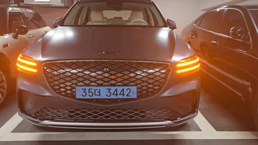 전기차만의 감성을 담은 외관 디자인도 인상적이다. 차량 전면부는 지-매트릭스(G-Matrix) 패턴을 그라데이션 형태로 입힌 새로운 형상의 크레스트 그릴이 적용됐다. 아울러 넓고 확장된 느낌을 주는 범퍼 디자인으로 전동화 SUV만의 세련된 감성을 표현했다. 제네시스의 상징인 두 줄 헤드램프는 MLA(Micro Lens Array) 기술을 적용해 우아한 디자인과 첨단 기술을 조화시켰다. 특히 차량 잠금 해제를 할 때 불빛이 들어오는 '다이나믹 웰컴 라이트'는 프리미엄 차량으로서의 멋을 더한다.