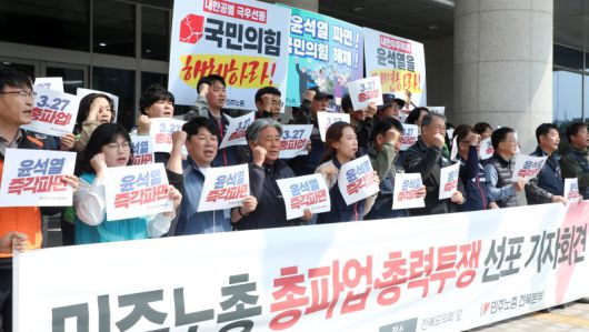 【파이낸셜뉴스 전주=강인 기자】 민주노총 전북본부가 윤석열 대통령 파면을 촉구하며 총파업을 예고했다.