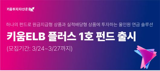 [이데일리 원다연 기자] 키움투자자산운용이 은퇴 예정자와 은퇴자들을 위한 맞춤형 연금 전용 상품인 ‘키움ELB플러스증권투자신탁제1호(채권혼합)를 출시한다고 24일 밝혔다.