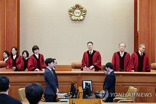 입장하는 헌법재판관들 |