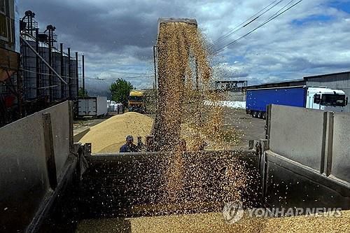 우크라이나 오데사 지역에서 수확한 곡물을 차량에 싣는 농민들 [로이터 연합뉴스 자료사진. 재판매 및 DB 금지]