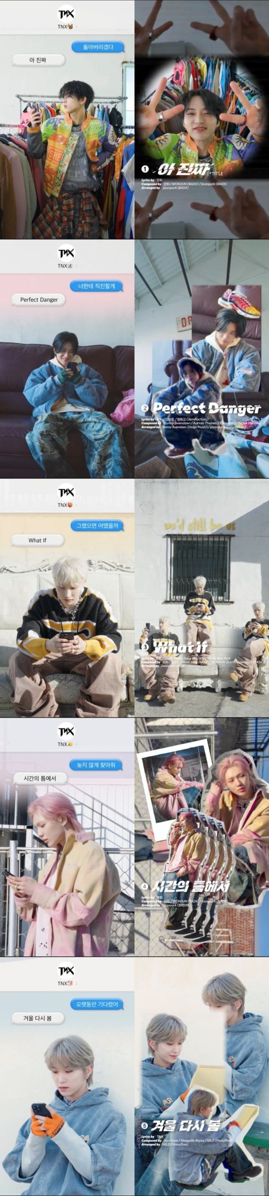 TNX (최태훈, 장현수, 천준혁, 은휘, 오성준)는 최근 공식 SNS 채널을 통해 네 번째 미니앨범 ‘For Real?(포 리얼?)’의 전 트랙 스포일러를 순차적으로 공개했다.