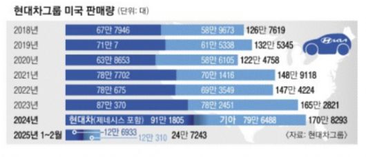 현대자동차·기아가 미국 시장에서 누적 판매 3000만대 돌파를 눈앞에 뒀다. 1986년 미국 시장에 진출한 이후 39년 만의 성과다. 현대차·기아는 올해 다양한 판매 라인업과 유연한 생산 체제로 도널드 트럼프 2기 행정부의 ‘관세 압박’에 대응하기로 했다.